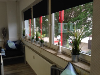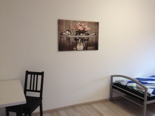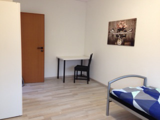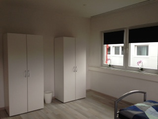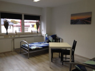 Die Wohnung befindet sich im I. OG eines Büroobjektes. Auf rd. 78 m² verteilen sich drei Zimmer (1/2/2 Betten), die für insgesamt fünf Personen ausgestattet sind. Die Küche und das Bad mit Dusche dienen der gemeinschaftlichen Nutzung. Die Wohnung kann zimmerweise oder auch komplett für z. B. Montagearbeiter angemietet werden. Möglich sind Wochen- oder Monatsanmietungen. Die drei Schlafzimmer sind jeweils mit einem bzw. zwei Betten ausgestattet. Zu dem Mobiliar gehören weiterhin ein Tisch mit Sitzmöglichkeiten sowie ein Schrank pro Person. Jedes Schlafzimmer ist zudemmit einem eigenen Fernseher ausgestattet. Alle Zimmer sind neu möbliert. Rauchen ist in den Gemeinschaftsräumen sowie auf den Zimmern nicht gestattet.